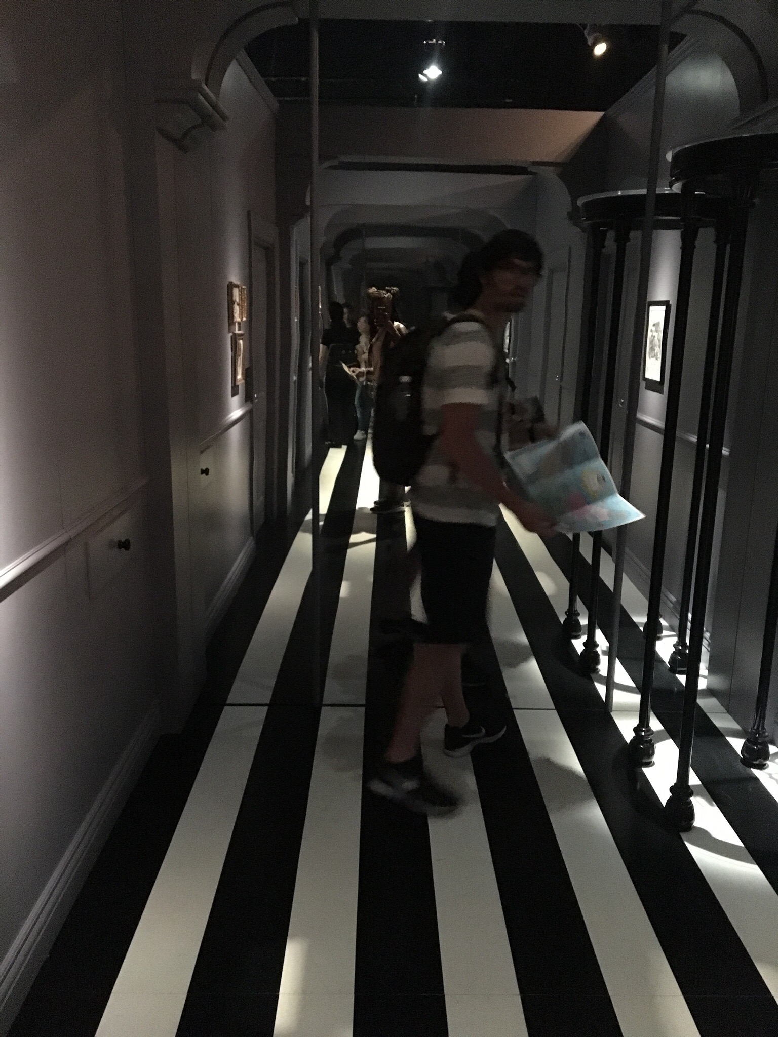 This is us exploring the Wonderland exhibit. The entrance into this exhibit was a pinstripe maze.