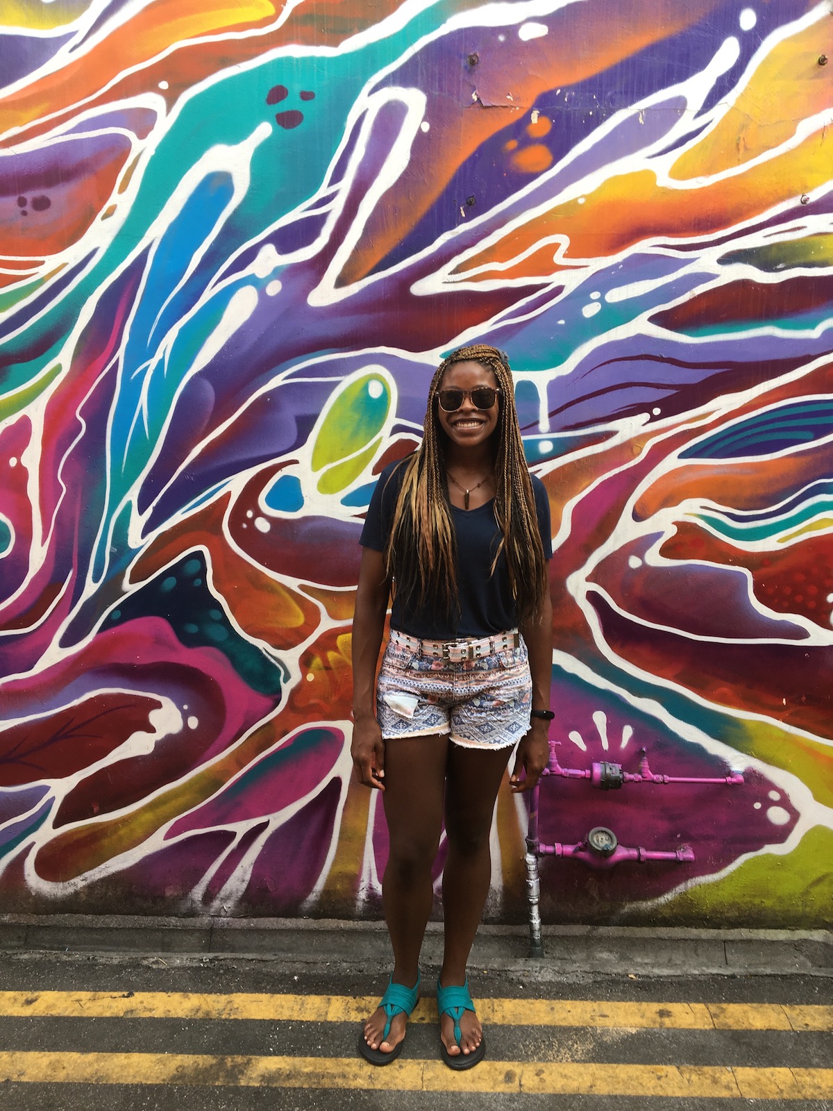 • A photo of me standing in front of a vibrant mural